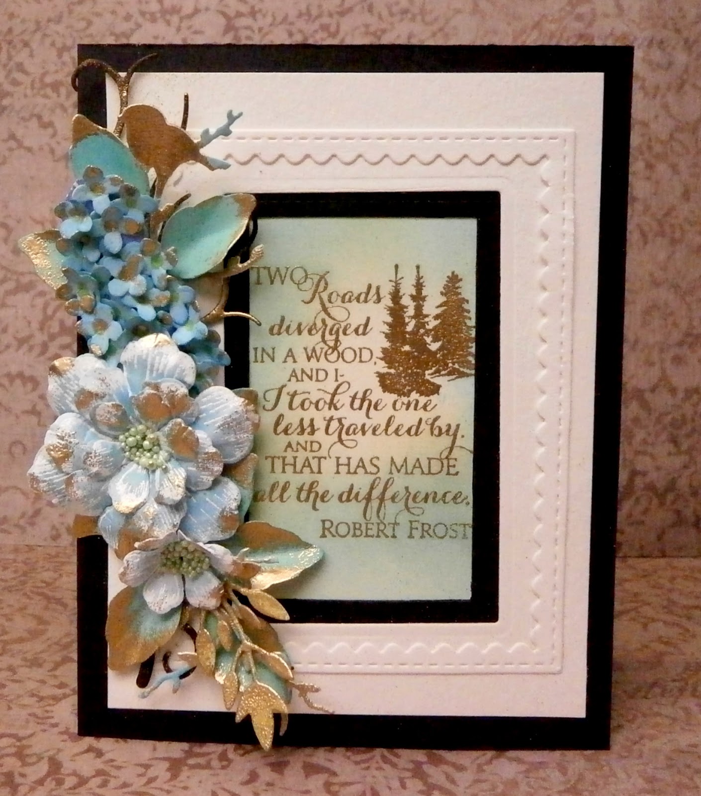 This is just stunning. I love Robert Frost, and I especially love this poem - it reminds me of my hubby. Your colors are awesome and of course the flower spray is beyond amazing. Your whole design is perfect, just gorgeous!!!